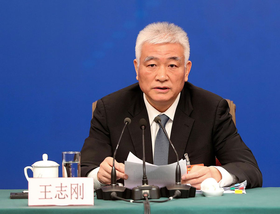 Minister of Science and Technology Wang Zhigang answers questions at a news conference on "making China a country of innovators" in Beijing on March 11, 2019. [Photo by Feng Yongbin/chinadaily.com.cn]