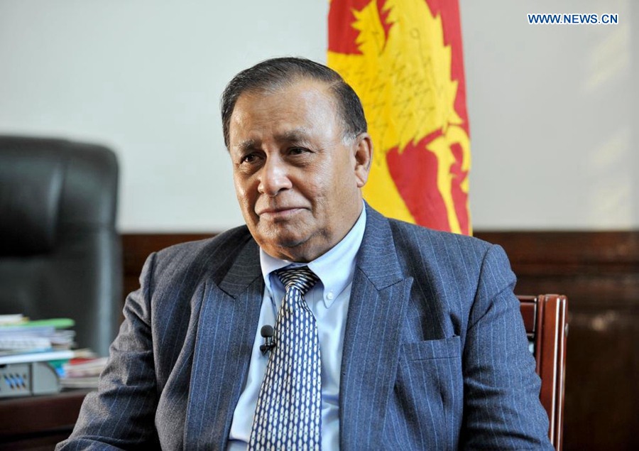 Sri Lankan Ambassador to China Dr. Karunasena Kodituwakku accepts an interview with Xinhuanet in Beijing, capital of China, Feb. 28, 2019. (Xinhuanet/Xu Xin)