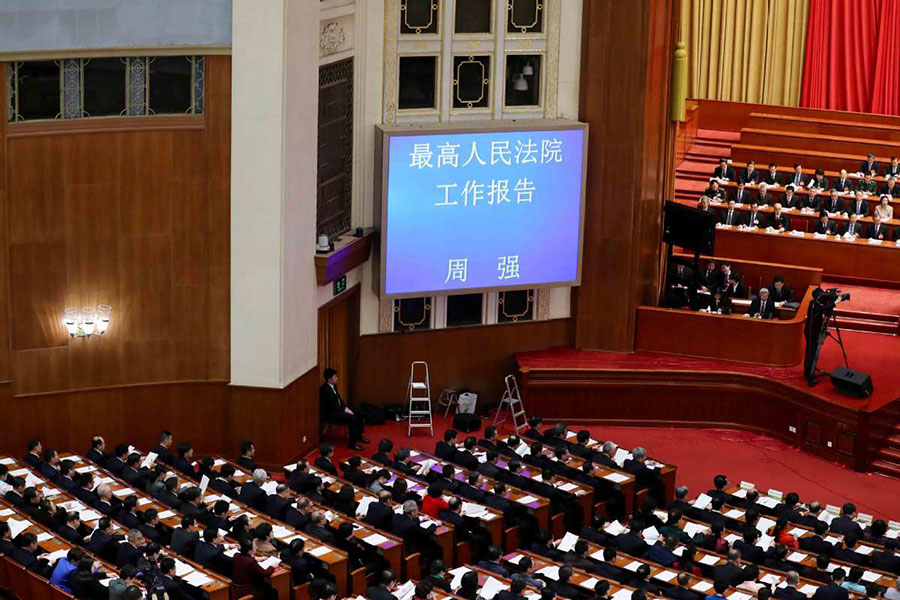 National legislators hear a work report of the Supreme People's Court at a plenary meeting of the NPC at the Great Hall of the People in Beijing on March 12, 2019. [Photo by Kuang Linhua/chinadaily.com.cn]