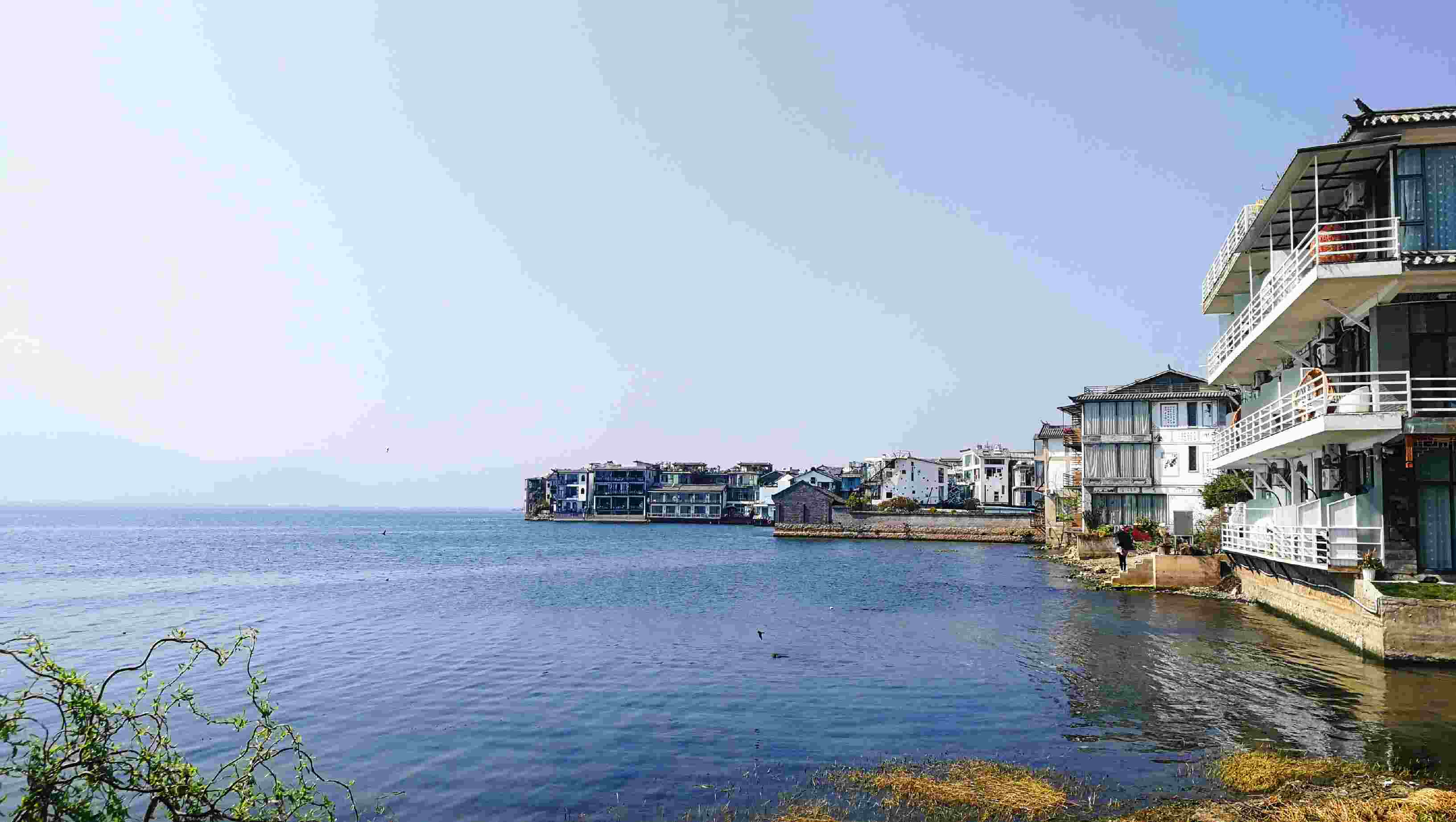 The coast of Erhai is teemed with hotels with different characteristics, March 14, 2019. (People's Daily Online/Ye Ting)