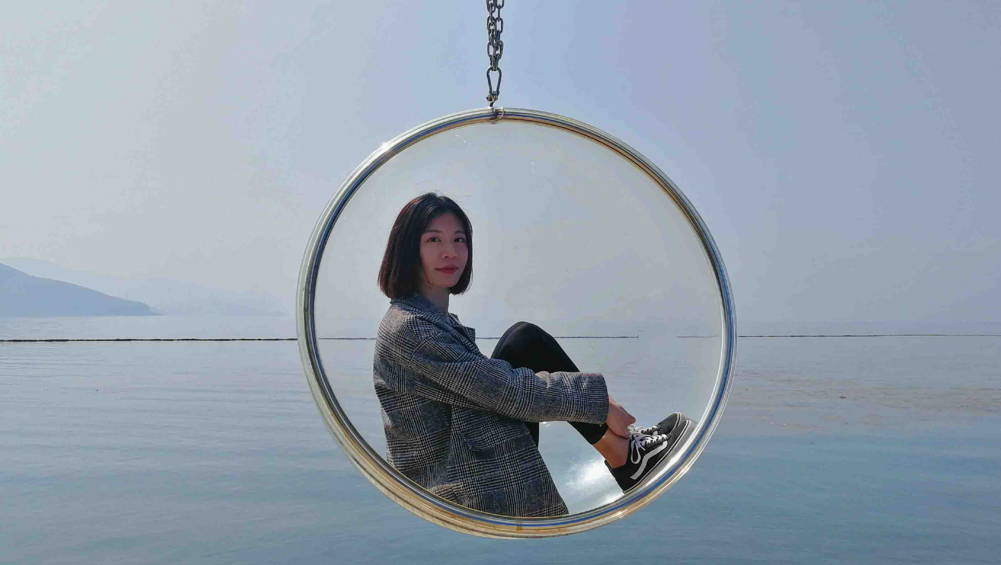 A tourist has her photo taken with the trendy glass ball along Erhai, March 14,2019. (People's Daily Online/Ye Ting)
