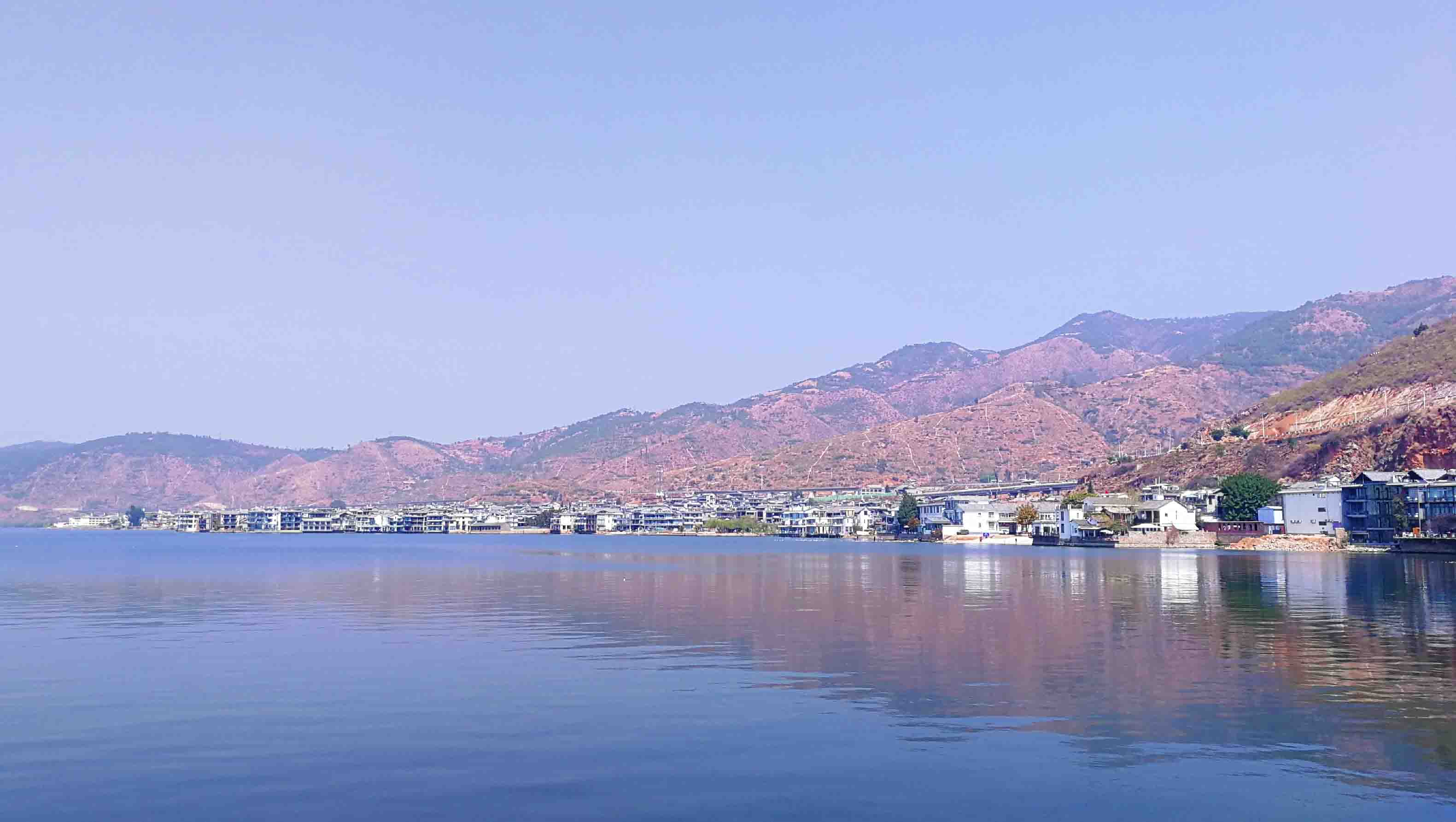 Various sea view hotels along the Erhai in Shuanglang ancient town forms a beautiful coastline, March 14, 2019. (People's Daily Online/Ye Ting)