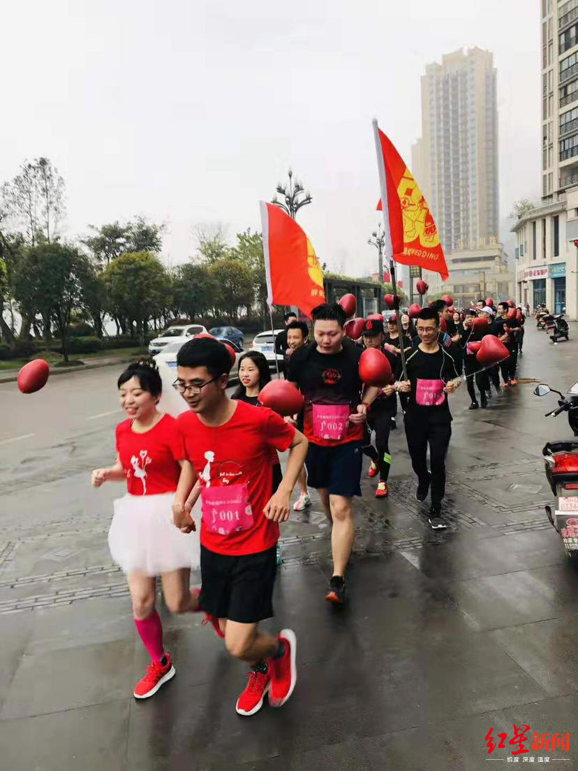On the morning of March 17, more than 40 runners gathered in Baixi Town, Xuzhou District of Yibin City, to escort the couple on their special day.