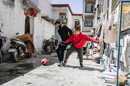 Children play soccer in an alley in Lhasa, Southwest China's Tibet Autonomous Region. Photo: Li Hao/GT