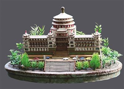 Yu's sculpture depicting the Chongqing People's Grand Hall. (Photo/Chinanews.com)