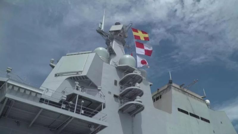 A photo of China's first domestically made aircraft carrier during its fifth sea trial. (Photo/CCTV)