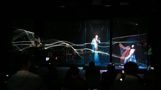 BEIJING, April 28 (Xinhua) -- Performers played different Chinese musical instruments, swinging with the melodious music on stage. Welcome to the debut performance of MOJA -- a band of three robots.