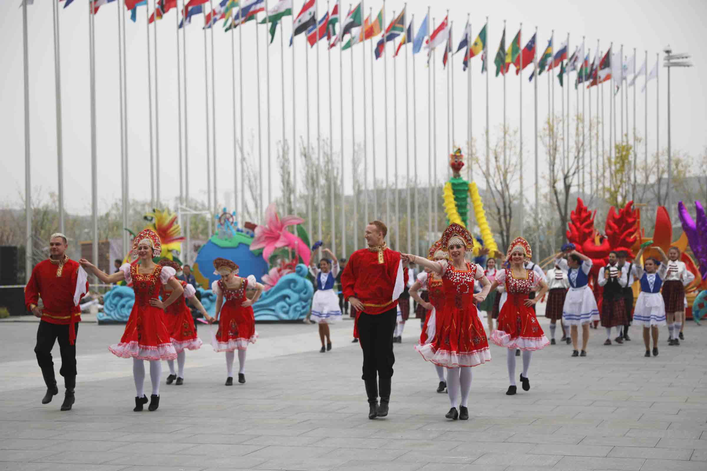 Performers dance to welcome the Beijing Horticultural Exhibition 2019 on April 29 (People's Daily Online/Xian Jiangnan)