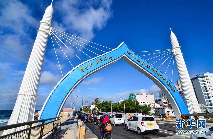 Sinamalé Bridge, developed as part of the Belt and Road Initiative, connects the Capital City Malé with Hulhumalé and Hulhulé of Maldives. (Photo/Xinhua)