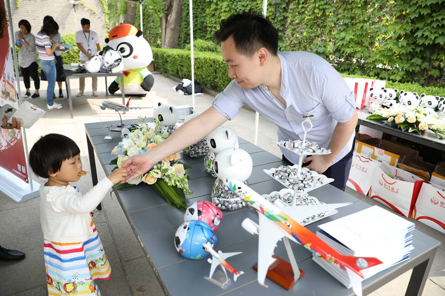 A child receives candy in the shape of a panda on Panda Day. (People's Daily Online/Sheng Chuyi)