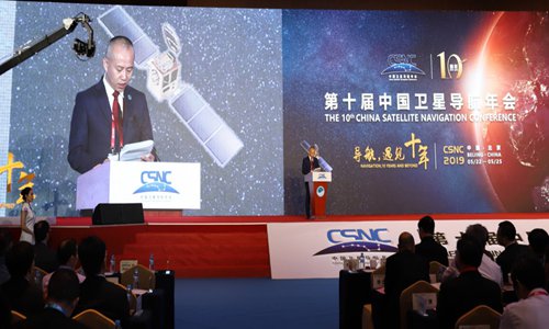 Ran Chengqi, the director of China's Satellite Navigation Office,speaks at the opening of the 10th China Satellite Navigation Conference in Beijing on Wednesday. Photo: Deng Xiaoci/GT