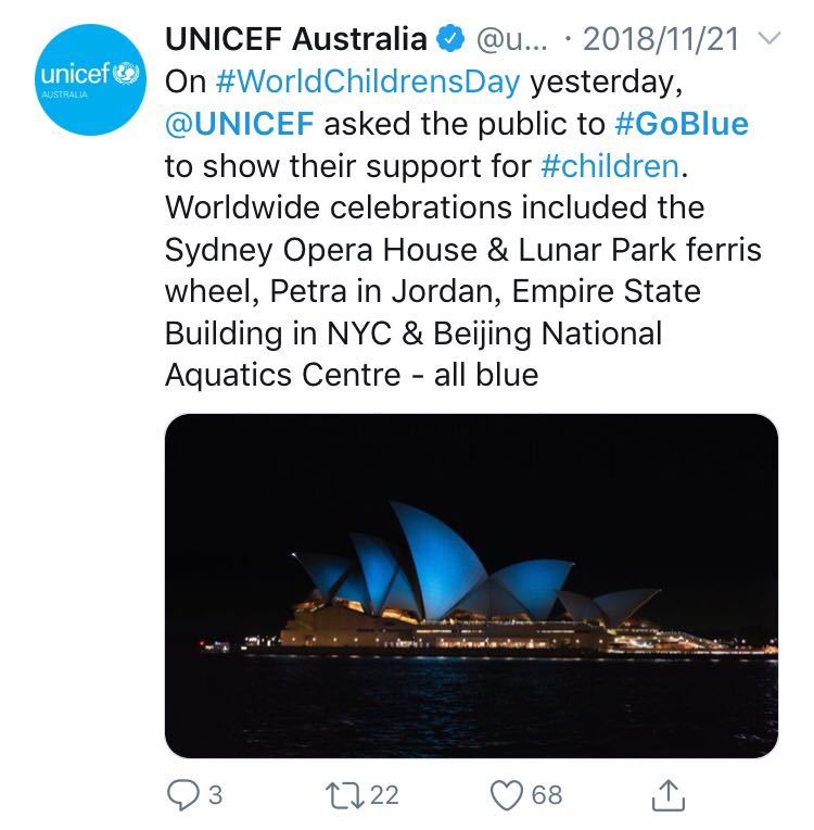 UNICEF Australia's #GoBlue activity (A screenshot from twitter)