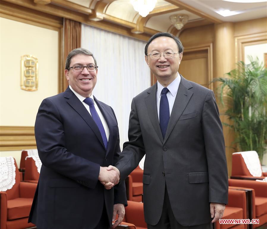 As next year marks the 60th anniversary of the establishment of their diplomatic ties, China is willing to work with Cuba to implement the major consensus reached by the two countries' leaders, enhance high-level exchanges, promote the joint building of the Belt and Road, and strengthen coordination in international affairs to jointly maintain peace and stability of the two countries and regions, Yang said.