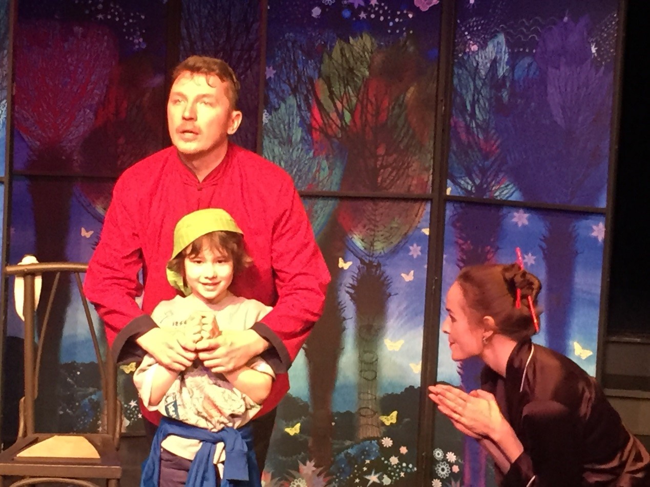 Actors interact with a child on the stage at premiere of a fairy tale play adapted from “With the Chinese Fairy Tales – All the Year Round” a book by Irina Zakharova, a meritorious cultural activist and famous sinologist in Russia. The play was premiered in Moscow recently. The book introduces Chinese festival customs, folklore, mythical characters and games of Chinese children according to the lunar calendar, and is popular among Russian kids since its publication. (People’s Daily/Wu Yan)