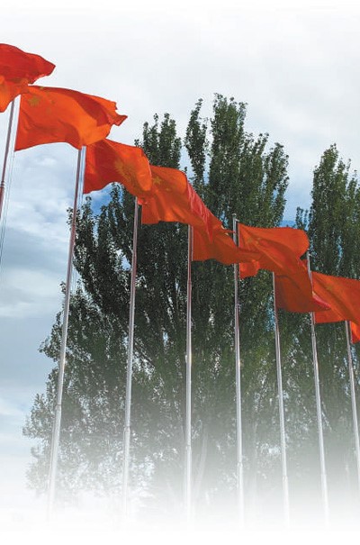 The national flags of China and Kyrgyzstan are raised outside the Manas International Airport, Bishkek, to welcome Chinese President Xi Jinping’s visit to Kyrgyzstan. Photo by Wang Xiaodong, People’s Daily