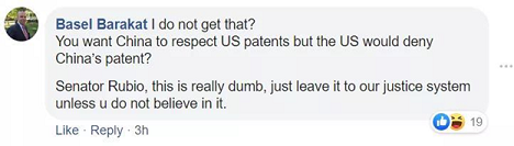 Another Facebook user wrote: “I do not get that? You want China to respect US patents but the US would deny China’s patent?” adding that the move is “really dumb.”