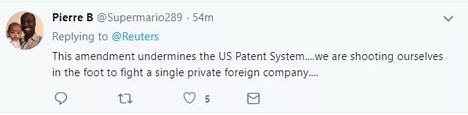 One netizen said that Rubio’s approach would be akin to shooting the country in the foot and would damage the reputation of the US patent system. “This amendment undermines the US Patent System,” a Twitter user said in response to the report by Reuters, adding: “We are shooting ourselves in the foot to fight a single private foreign company.”