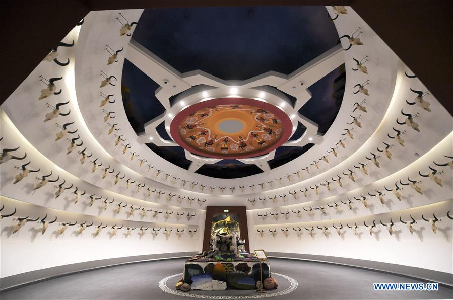 The collected yak skulls are seen at the Yak Museum in Lhasa, capital of southwest China's Tibet Autonomous Region, May 21, 2019. (Xinhua/Purbu Zhaxi)