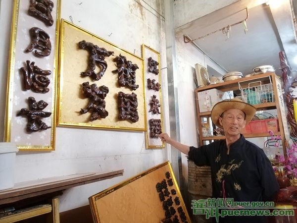 Zhang Xiang, an 81-year-old man from Pu’er, has carved three pieces of “Long Live the Motherland” in tree roots to express his love for the motherland.