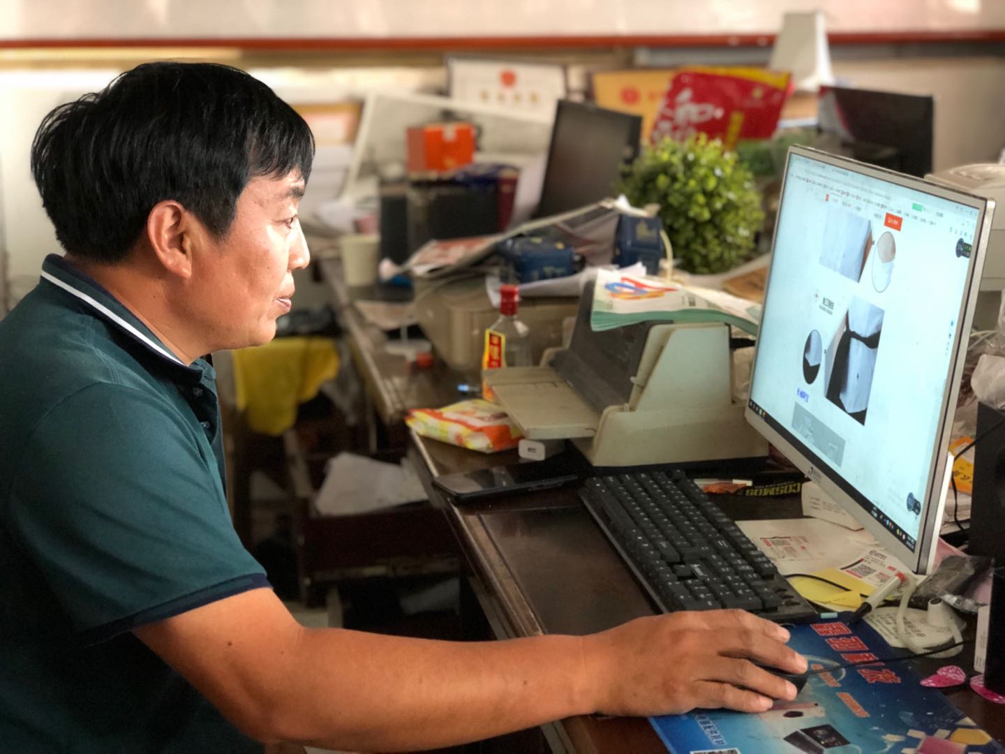 Ren Qingsheng was the first business owner to tap into e-commerce in Dinglou Village. In 2010, Ren noticed the potential of online retailing and seized the opportunity it presented. After borrowing 1,400 yuan to buy a computer, Ren started his online sale career by earning 600 yuan in profit from the first deal. That year, he made a total of 7,000 yuan from online sales. He primarily sells costumes for children, which is also the pillar industry in Daiji Township and its surrounding areas. Last year, his sales totaled about $1.2 million with a profit of $300,000.