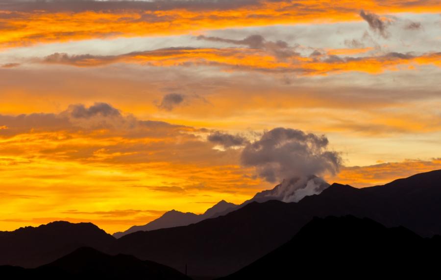 The orange glow of sunset creates a spectacular view of the sky over Danxia National Geological Park in Zhangye, Northwest China's Gansu Province. (Photo provided to chinadaily.com.cn)