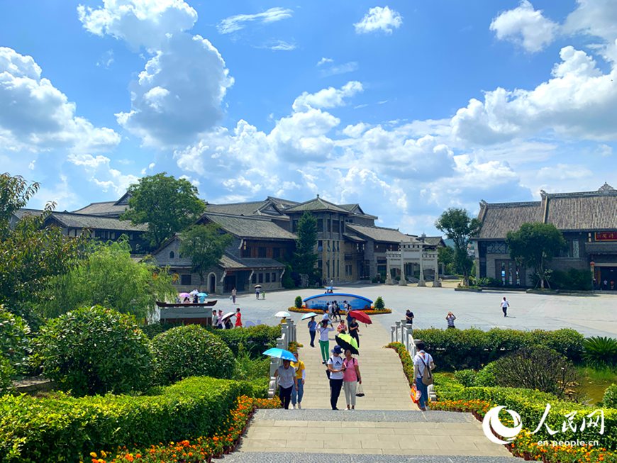 Tourists walk in Qingyan Ancient Town, a southern suburb of Guiyang City, southwest China's Guizhou Province, July 30, 2019. The spot is home to smart technologies including wifi coverage, video monitoring, electronic ticketing and intelligent parking. (People's Daily Online/ZhaoTong)