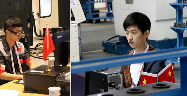 Zhang Zhibin (left) and Zhang Zhikun participate in the WorldSkills Competition in 2018. [Photo provided to China Daily]