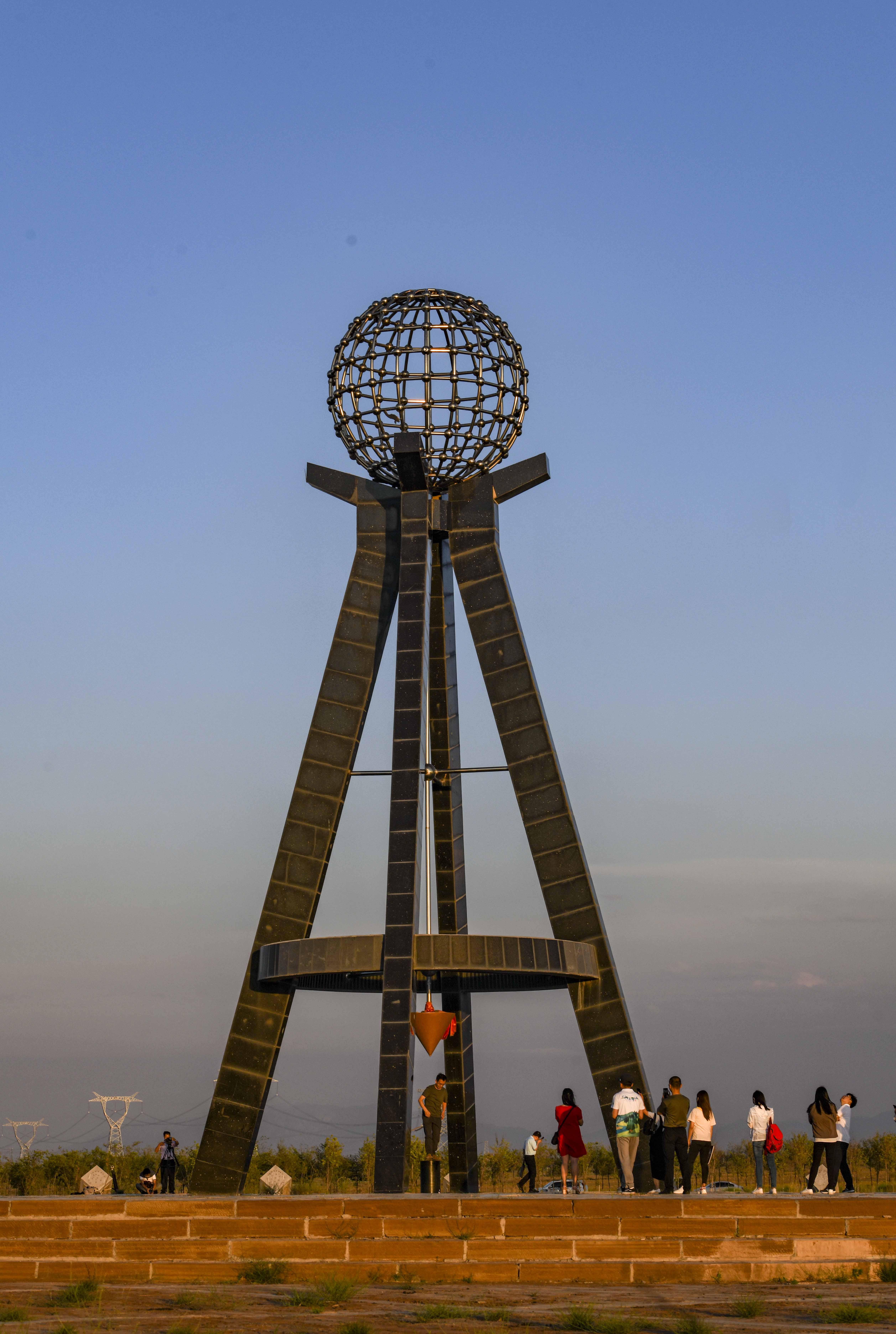 People visit the monument of the geographical center of the Asian continent in Yongxin Village of Urumqi, northwest China's Xinjiang Uygur Autonomous Region, July 12, 2019. (Xinhua/Zhao Ge)