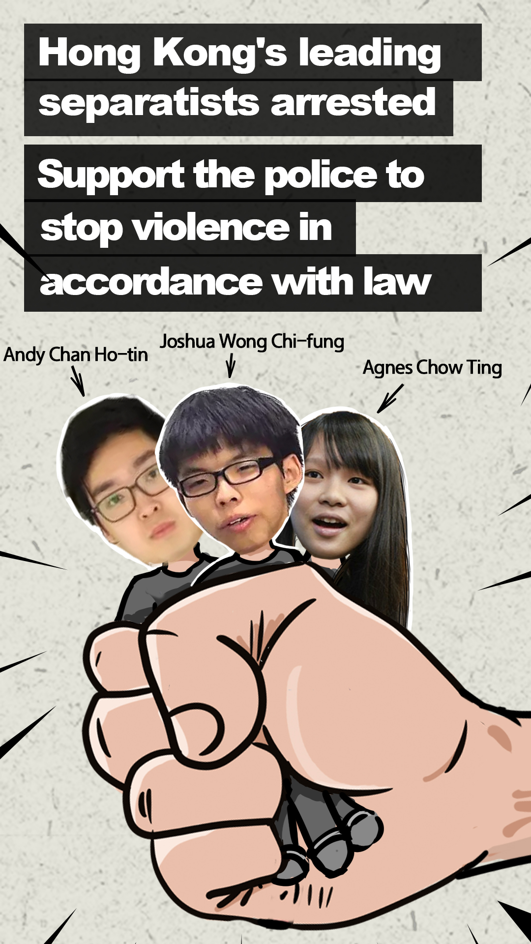 Three of Hong Kong's leading separatists – including leader of the illegal Occupy movement Joshua Wong Chi-fung and founder of a banned separatist party Andy Chan Ho-tin - have been arrested.