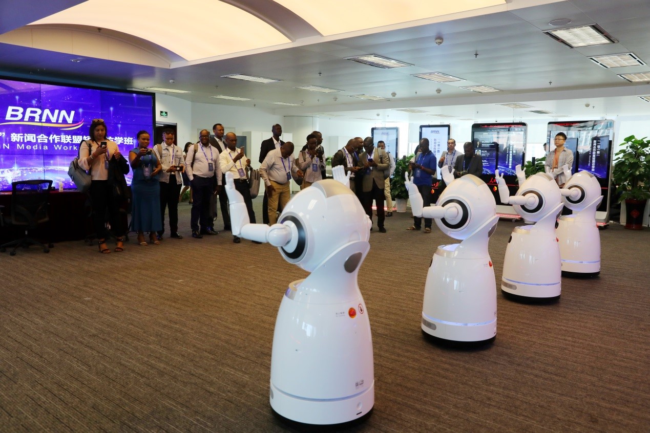 Dozens of senior editors and journalists from Latin America and Africa attended the opening ceremony. They were welcomed by smart robots nicknamed Xiao Meng who opened their arms at the gate of the new headquarters of People’s Daily.