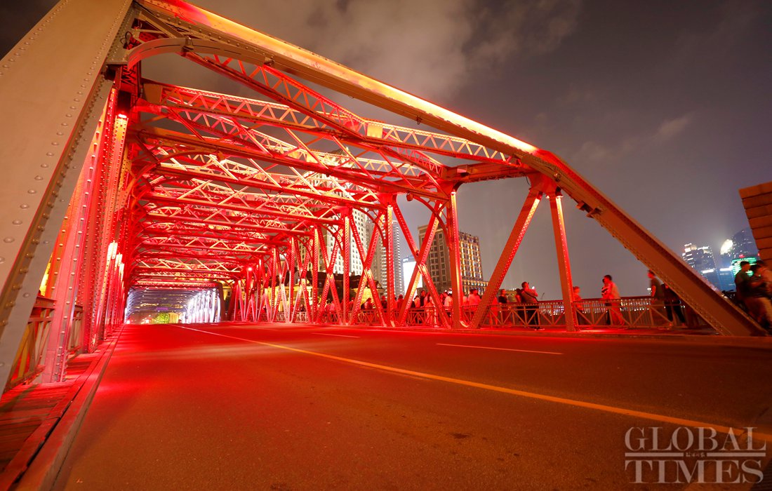 As the National Day holidays approach, there is a big wave of action on the landscape in Shanghai: Chinese national flags are hung along Nanjing Pedestrian Street; the flower beds are newly unveiled; the Bund area is decorated with a flower wall; the 112-year-old Waibaidu Bridge also renewed its lighting group... The entire city celebrates the 70th anniversary of the founding of the People's Republic of China in a hot and peaceful atmosphere. Photos: Yang Hui/GT
