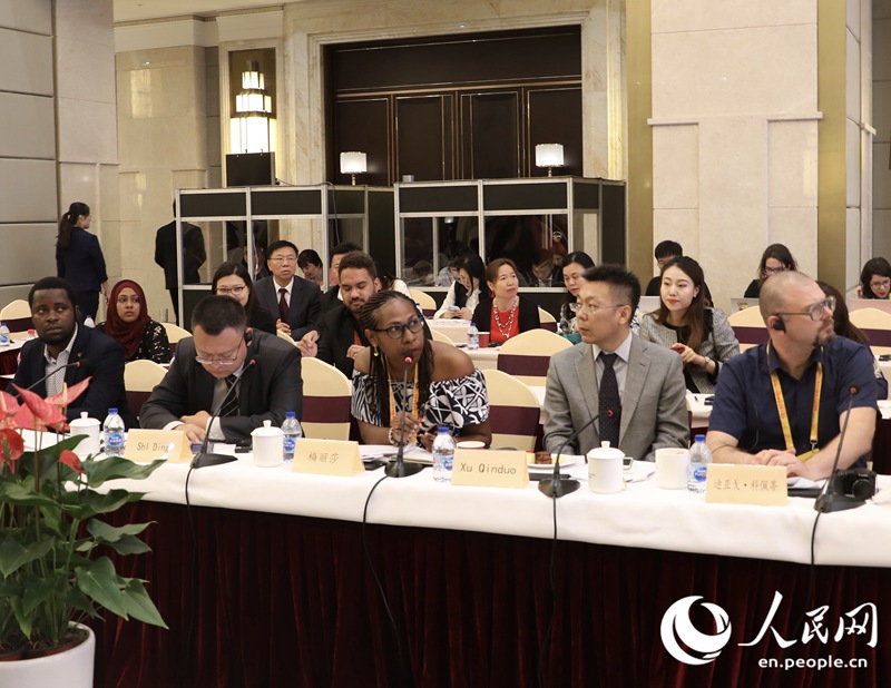 Melisha Yafoi, Journalist from Papua New Guinea, gives a presentation during the forum. (People’s Daily Online/Zhao Tong)