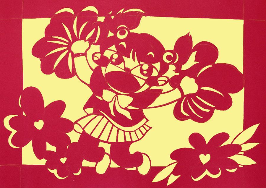 A piece of Chinese paper cut work is on display at an exhibition in Beijing. (Photo/chinadaily.com.cn)