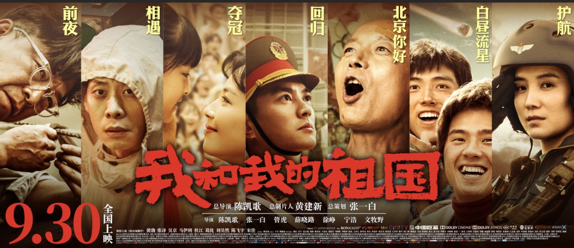 At the end of the screening, the large crowd of audience stood up to the theme song "My People, My Country," singing and waving Chinese national flags.