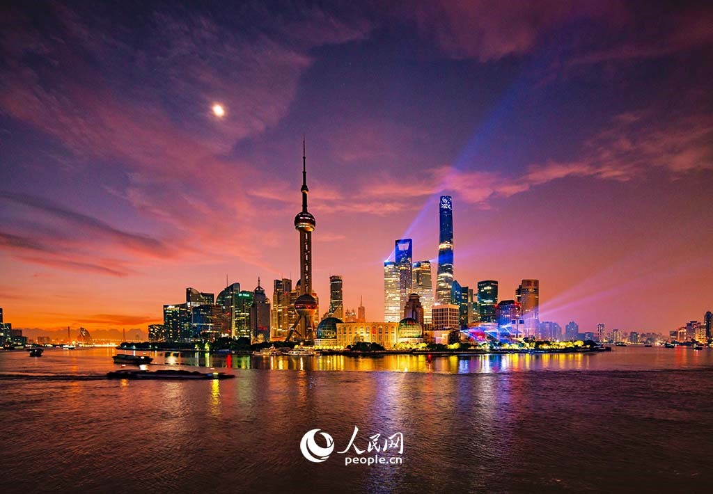 A light show in the Lujiazui financial district, Shanghai (People's Daily Online/Yang Fan)