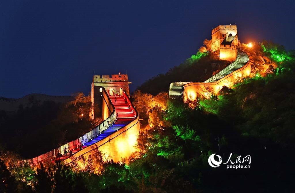 The Badaling section of the Great Wall in Beijing looks like a dragon when the lights are turned on. (People's Daily Online/Lei Sheng)