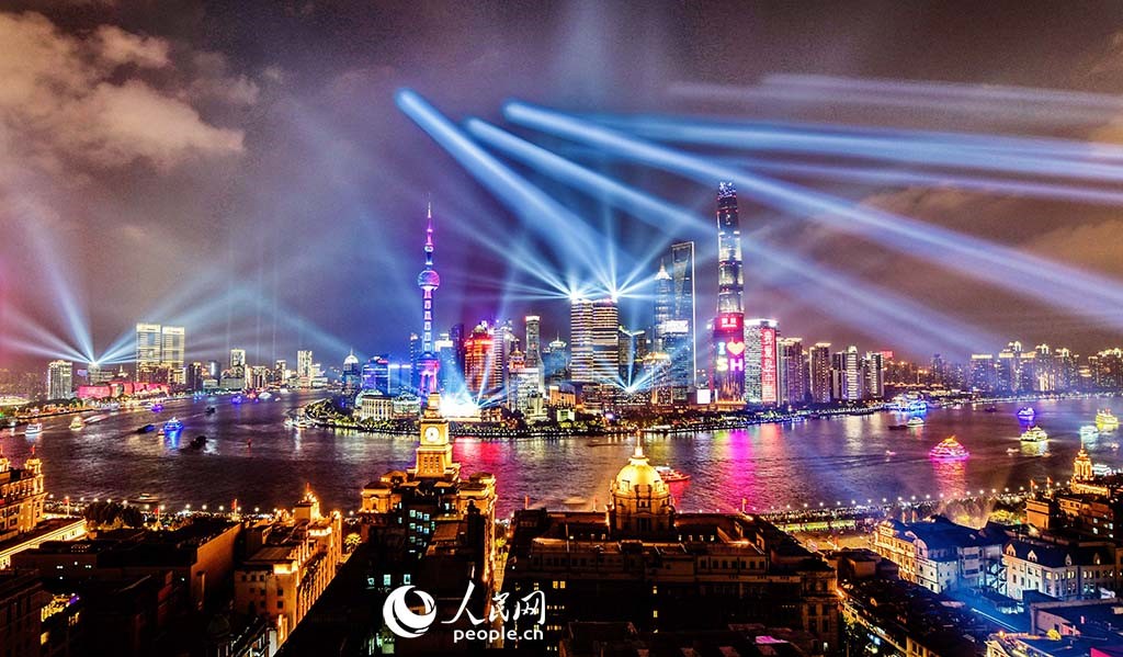 A light show in the Lujiazui financial district, Shanghai (People's Daily Online/Huang Weiguo)