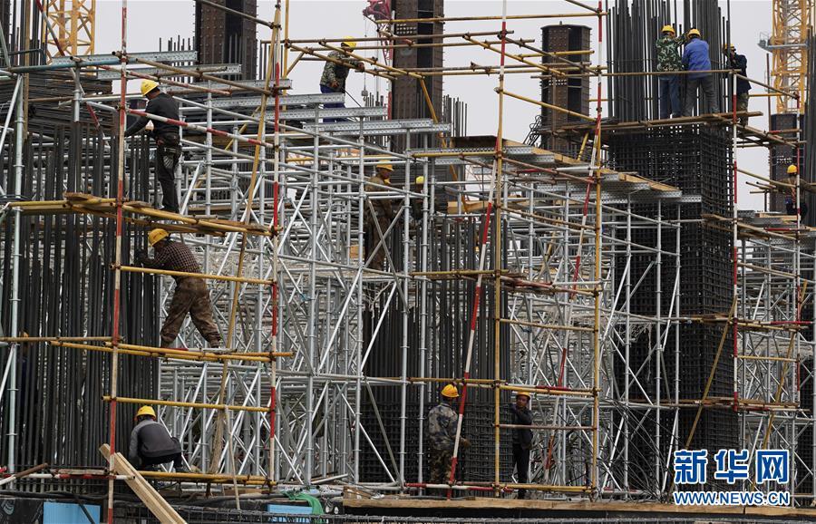 Railway builders work at the construction site of Xiongan Station of Beijing-Xiongan intercity high-speed railway in Xiongan New Area, north China's Hebei Province, October 10, 2019. Covering an area of 470,000 square meters, Xiongan Station is consisted of three floors above ground and two floors beneath ground. (Photo/Xinhua)