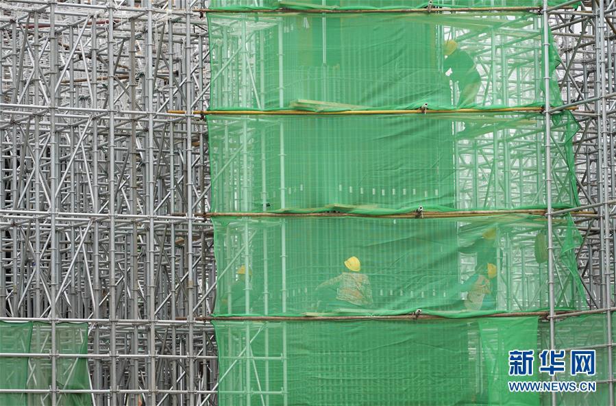 Railway builders work at the construction site of Xiongan Station of Beijing-Xiongan intercity high-speed railway in Xiongan New Area, north China's Hebei Province, October 10, 2019. Covering an area of 470,000 square meters, Xiongan Station is consisted of three floors above ground and two floors beneath ground. (Photo/Xinhua)