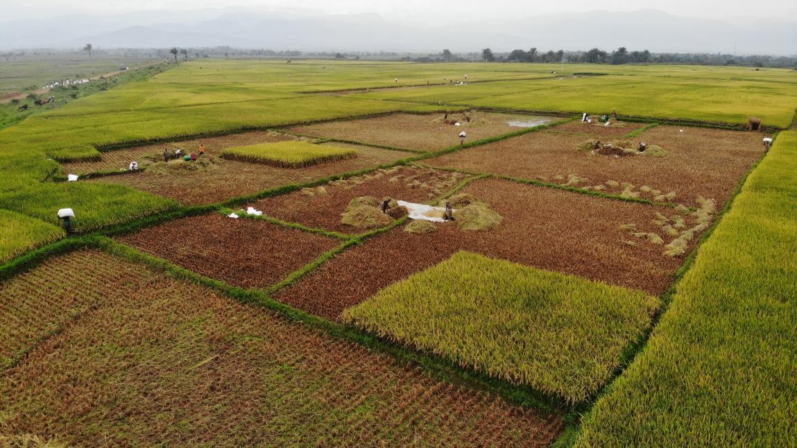 Farmers are busy harvesting rice in a demonstration field under a China-assisted hybrid rice project in Burundi. (Photo by Lv Qiang/People’s Daily)