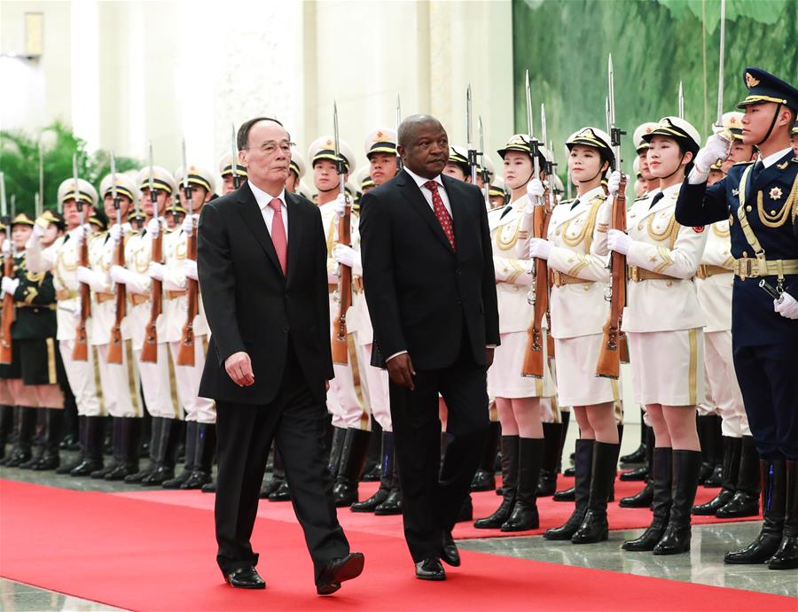 Chinese Vice President Wang Qishan holds a welcome ceremony for South African Deputy President David Mabuza in Beijing, capital of China, Oct. 31, 2019. Chinese Vice President Wang Qishan and South African Deputy President David Mabuza held talks and co-chaired the seventh plenary session of the China-South Africa Bi-National Commission Thursday in Beijing. (Xinhua/Pang Xinglei)