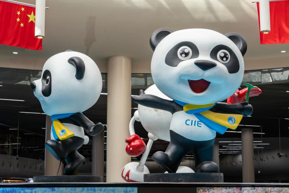Photo taken on October 29, 2019 shows the mascot of the CIIE at a transfer station of Shanghai metro. (Photo by Wang Gang)