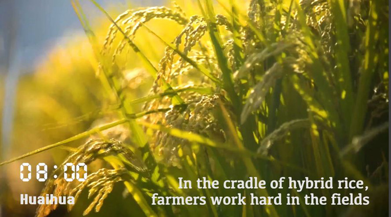 In the cradle of hybrid rice, farmers work hard in the fields.