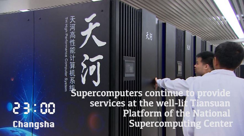 Supercomputers continue to provide services at the well-lit Tiansuan Platform of the National Supercomputing Center.