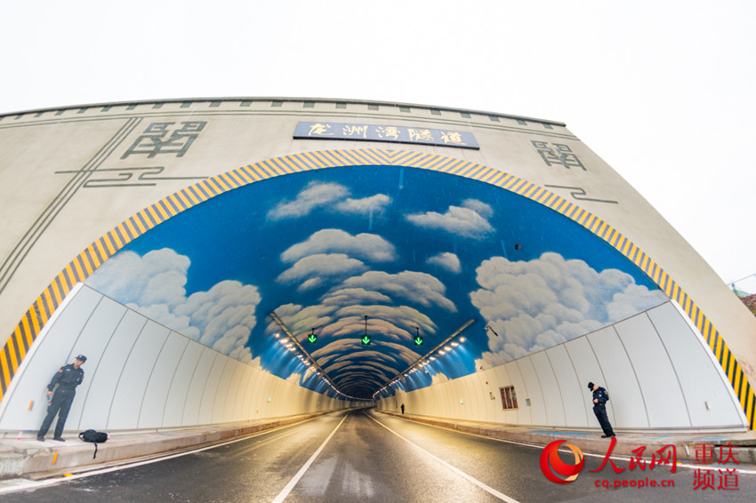 Longzhouwan tunnel painted with blue sky and white clouds opens (3)