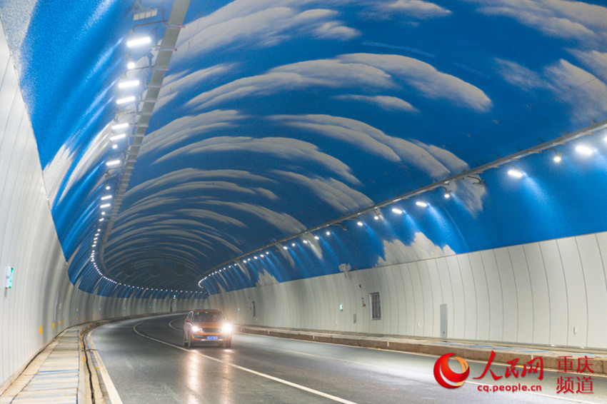 Longzhouwan tunnel painted with blue sky and white clouds opens (4)