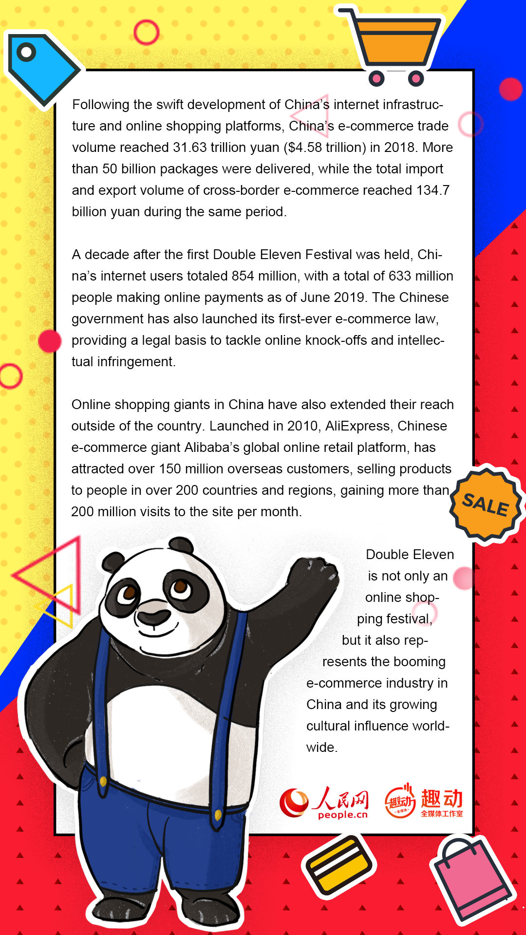 A decade after the first Double Eleven Festival was held, China’s internet users totaled 854 million, with a total of 633 million people making online payments as of June 2019. The Chinese government has also launched its first-ever e-commerce law, providing a legal basis to tackle online knock-offs and intellectual infringement.