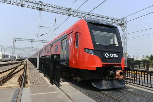 Photo taken on June 3, 2019 shows a city rail vehicle produced by China’s rolling-stock maker CRRC Qingdao Sifang Co., Ltd. rolls off the assembly line. The vehicle was exported to Sao Paulo, Brazil. It was designed to serve the first city rail to the airport in South America. (Photo by Zhang Jingang and Deng Wangqiang/People’s Daily)