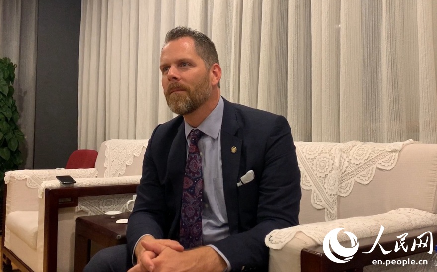Jacob Jake L. Anderegg is being interviewed on Nov. 8, 2019 in Beijing. (People’s Daily Online/Zhao Tong)