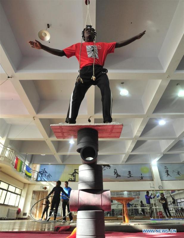 A student from Sierra Leone practises at Wuqiao Acrobatic Art School in Wuqiao County of Cangzhou, north China's Hebei Province, Nov. 18, 2019. Known as the "home of acrobatics" in China, Wuqiao County has become increasingly attractive to aspiring foreigners seeking an acrobatic career. (Xinhua/Zhu Xudong)